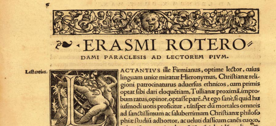 Erazmus Rotterdamský (1466-1536) je v odbore textovej kritiky Novej zmluvy známy najmä tým, že bol autorom/editorom prvej tlačenej Novej zmluvy v gréčtine. Práve niekde v tomto období sa začala nová etapa gréckeho textu Novej zmluvy, ktorý sa začal prenášať nie ručným prepisovaním (často s chybami), ale v tlačenej verzii, ktorej bola zaručená omnoho väčšia uniformita.