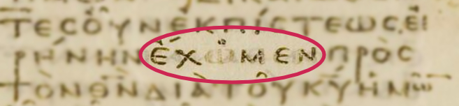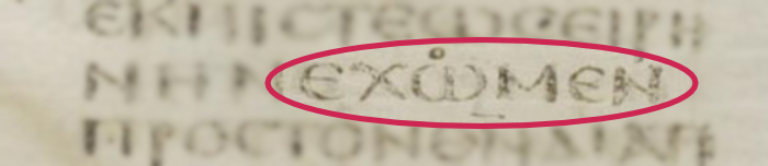 Nás však zaujíma, ktorý tvar slova — εχομεν/εχωμεν — sa nachádzal v autorskom rukopise a teda aká variácia je správna.
